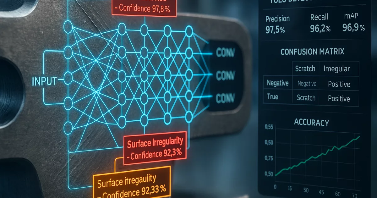 - Stufe 2 (KI, 150ms): YOLOv8 sucht nach Gratbildung und Oberflächenschäden. Diese sind zu variabel für Regeln.